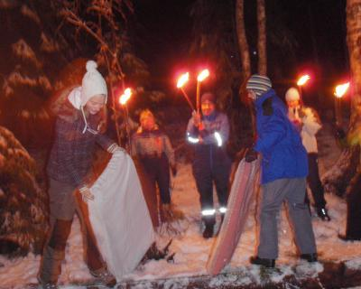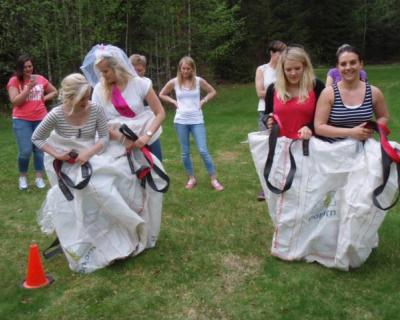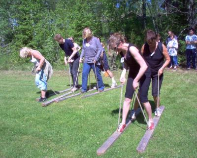 Arrangeres ved gården eller ved Jutulbo, Camp. Varighet ca 1 time. Gruppen deles inn med 6-8 pers. pr. lag. Inntil 3 lag pr. aktivitetsleder. Det er antall seiere som teller og det kan velges mellom øvelser som pil og bue, olabil, lasso, blåserør, tarsansprang, tandemski, skiskyting m/miniski, putekrig, tenning av bål, eggkasting. Lagene blir merket med dyrenavn, og her er det ikke å delta men å vinne som gjelder.