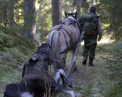 Elgjakt henger høyt og krever sitt av jegeren. Det egner seg derfor bare til jegere som har fått noe erfaring, men når det er sagt har vi her et arrangement hvor alt er lagt til rette med gode poster, info med kart, GPS og jaktradio. Vår kokk serverer utsøkte jaktmiddager og overnatting i hytta JUTULBO inne i jaktterreviret. Elgjakten er godt organisert, med små og korte drev med løshund, noe som gir stor variasjon og fine naturopplevelser. Hver jeger får utdelt kart, jaktradio og Astro GPS så de kan følge med på hvor hundene befinner seg. Det legges mye arbeid i postene, og mange av de er jakttårn. Felt elg fraktes ut av skogen med hest dersom det ligger til rette for det. Etter endt jakt er det vanlig med en øl i stallbaren for å oppsummere dagens hendelser. Noe å tenke på for firmaer som har jegere som ansatte og kunder. Vi tar også med gjestejegere på vårt eget jaktlag. For å få muligheten til å oppleve elgjakt kan vi også ta med noen medfølgere. Arrangementet kan også kombineres med skogsfugljakt.