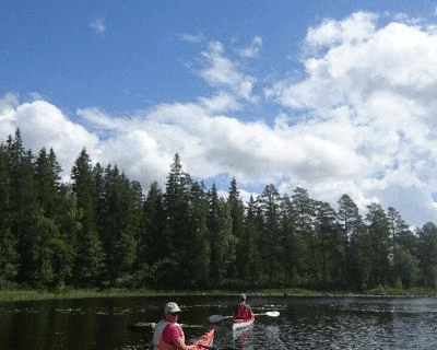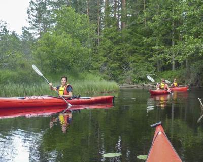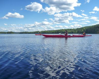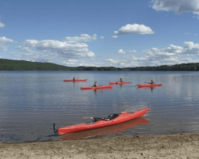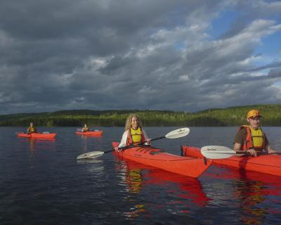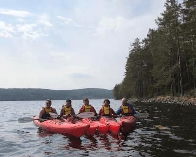 Stilige kajakker står klare på hengeren med padlevester, spruttrekk og årer. Vi bruker den siste modellen fra Hasle, Excursion 500 og 520, en rask, lett, og stødig havkajakk. Her får du hjelp til en myk start på områder med grunt vann for å bli trygg på en ny opplevelse. Kajakkpadling dreier seg mye om teknikk for å komme raskt frem med minst mulig bruk av krefter. Vi tar det viktigste i starten, og finpusser på detaljene etter pause med strandhugg og forfriskninger.
