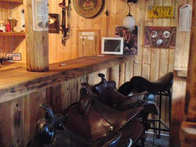 Stallbaren er både salrom og bar, så her lukter det lær og barstolene er saler. Alle rettigheter, bare revolveren i beltet mangler, men stemningen er garantert.