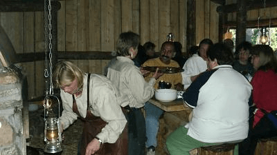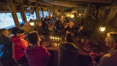 Vår villmarkscamp som ligger i et flott skogområde 3,5 km fra gården, sørger for at du får en fin overnatting og servering som står i stil med aktiviteter og opphold forøvrig. Vi har mange fine aktiviteter for å komme fra gården til basecamp f.eks. kanosafari, sykkelsafari, skattejakt eller skogsniking. Vel fremme møtes vi rundt bålet, mens kortresist viltmat tilberedes i serveringsbygget. Etter middagen når mørket og parafinlyktene kommer blir dette en veldig annerledes opplevelse som gir stor sosial samhørighet og rom for å bygge gode relasjoner.