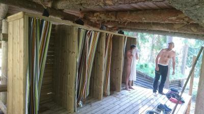 Både dusj og toalettforhold er veldig bra til å være i villmarken, og du sover i laftede sovebuer på tykke madrassser. Morgene etter kommer vi opp og tilbereder en delikat frokost med egg og bacon.